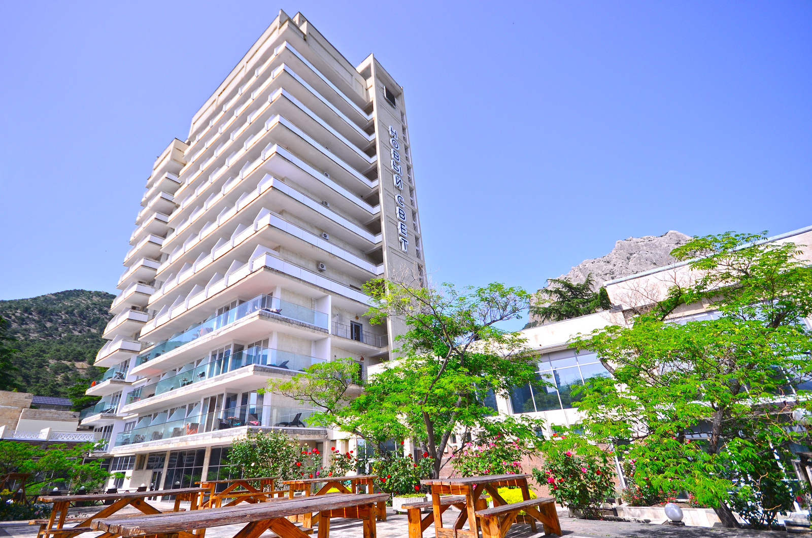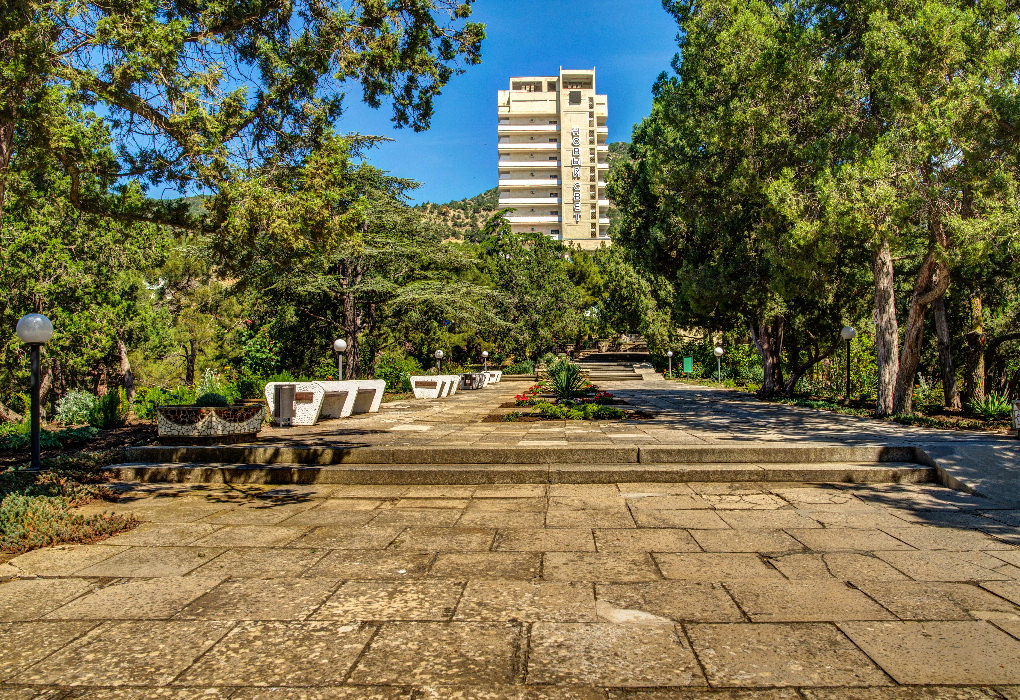 Пансионат находится в поселке Новый Свет, на берегу Зелёной бухты, с трёх сторон окружённой горами. Поселок Новый Свет по природно-климатическим показателям не имеет аналогов в Крыму. Воздух, напоенный фитонцидами сосны, можжевельника и горного разнотравья, является прекрасным средством для лечения и профилактики бронхолегочных заболеваний.