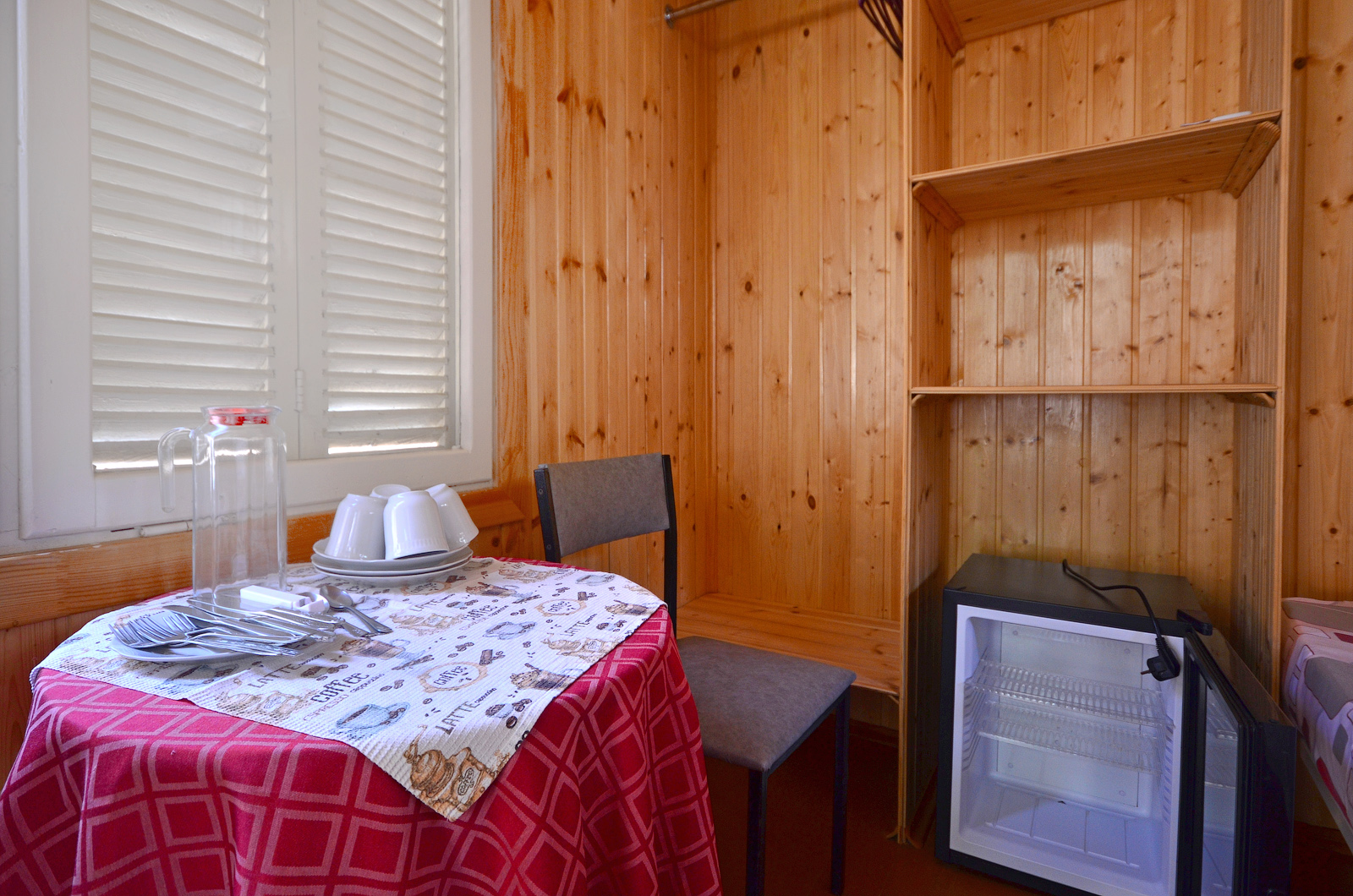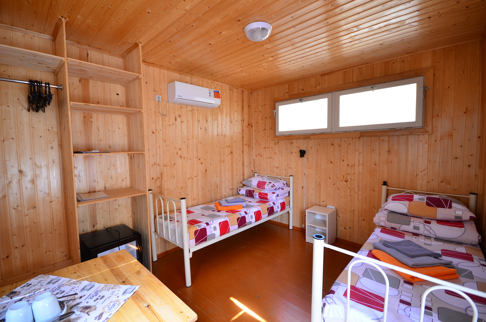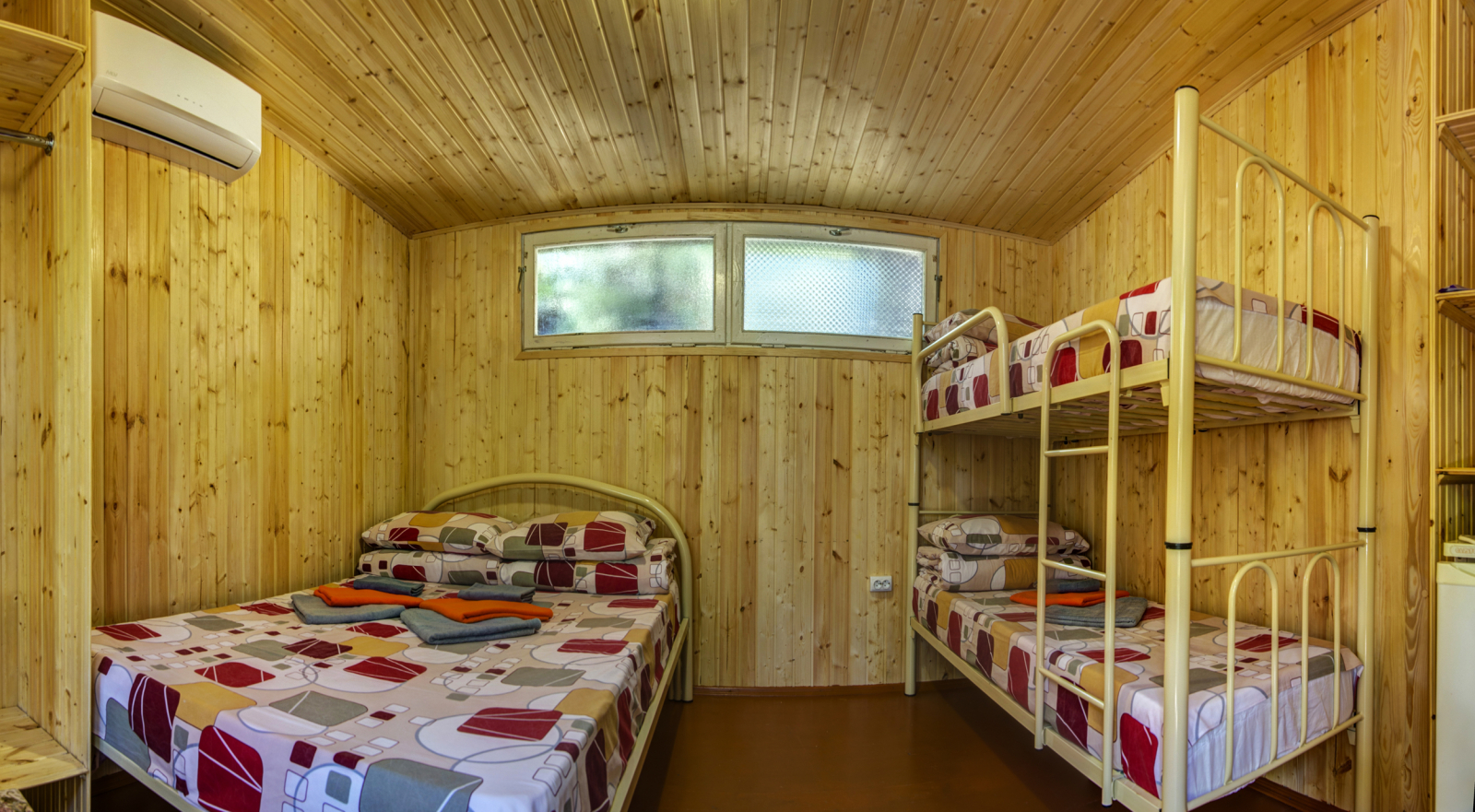 Площадь номера - 10 кв.м. 2 осн. места. 2 доп. места. Мебель: вешалка, зеркало, кровати односпальные /одна двуспальная кровать, кровать двухъярусная, прикроватные тумбочки, стол, стулья, шкаф. Оборудование: кондиционер, холодильник. Санузел: с душем, туалетные принадлежности. Сервис: смена полотенец, смена постельного белья, уборка номера. Терраса.