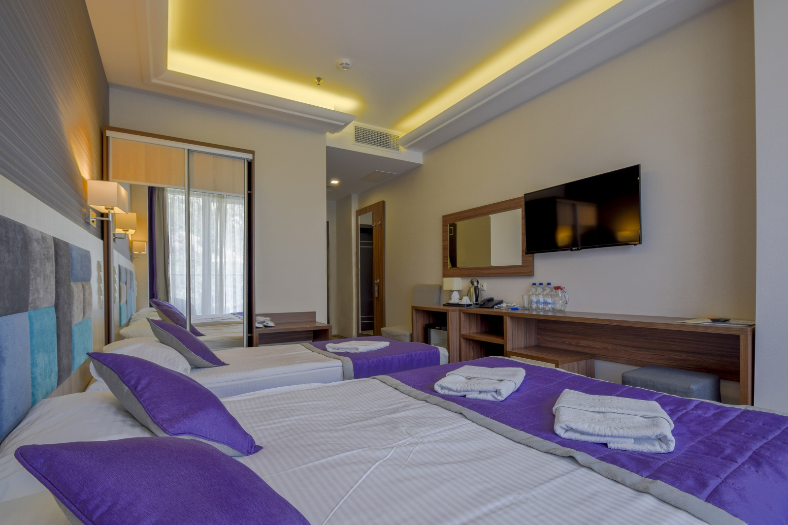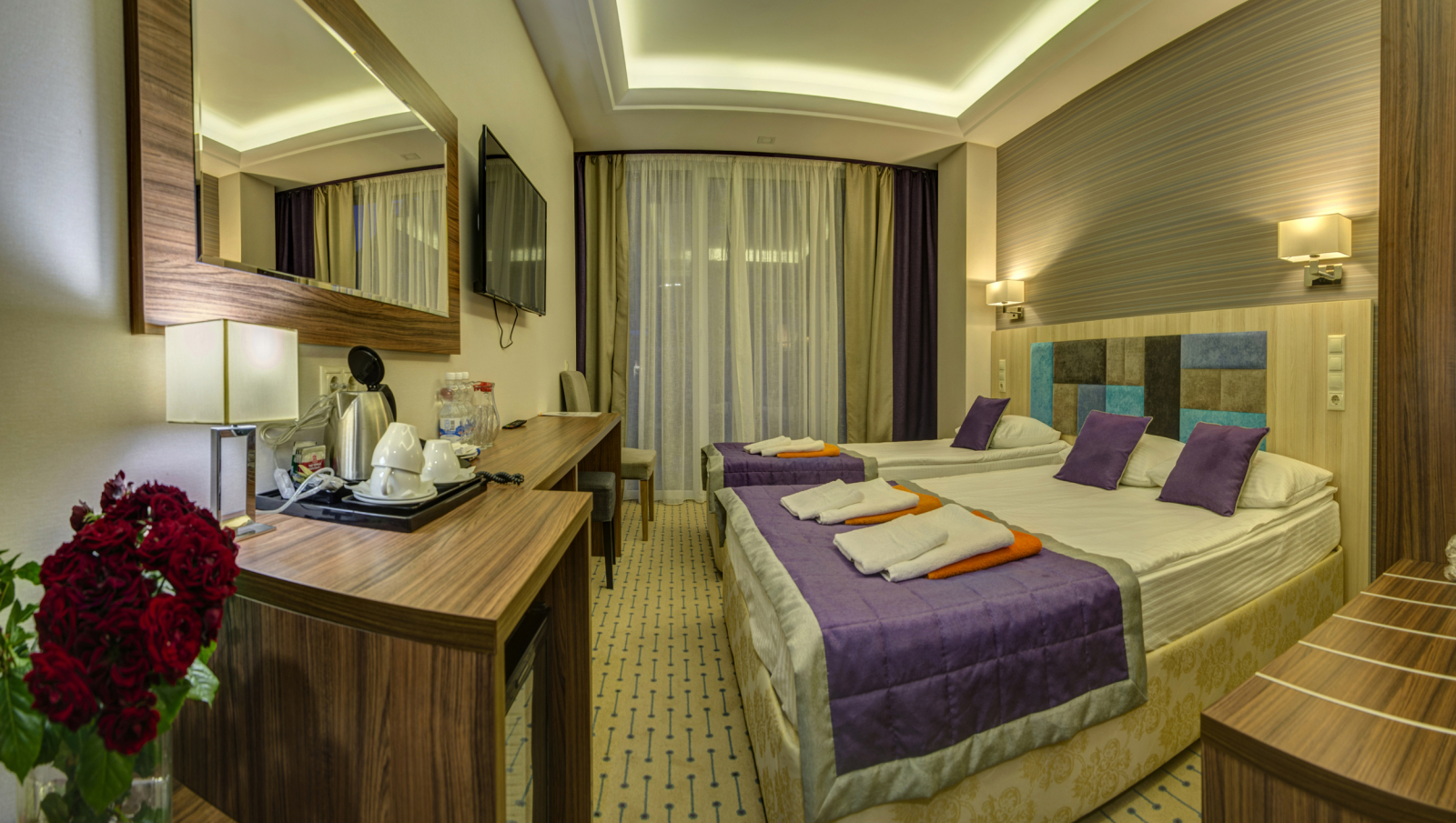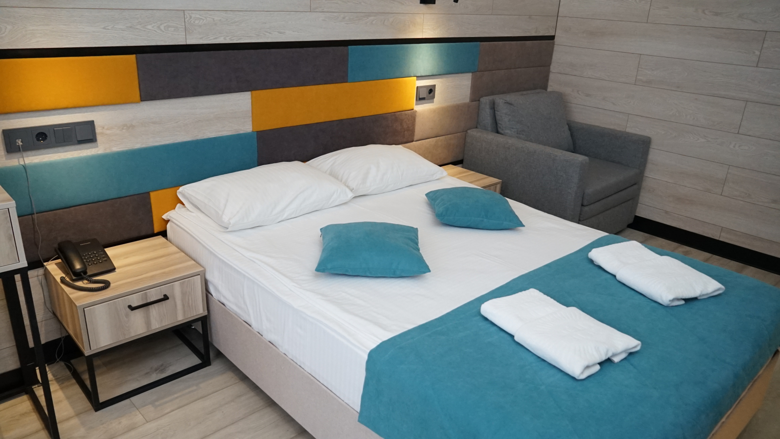 Площадь номера - 21,5 кв.м. 2 осн. места. 1 доп. место. Балкон. Мебель: вешалка, зеркало, кровати односпальные /одна двуспальная кровать, прикроватные тумбочки, стол, стул, шкаф. Оборудование: кондиционер, сейф, телевизор, телефон, холодильник, чайный набор посуды, электрочайник. Санузел: с душем, тапочки, туалетные принадлежности, фен, халат. Сервис: Wi-Fi бесплатно, мини-бар, смена полотенец (по требованию или 1 раз в 3 дня), смена постельного белья (1 раз в 5 дней), уборка номера (ежедневно), услуги внутренней телефонной связи.