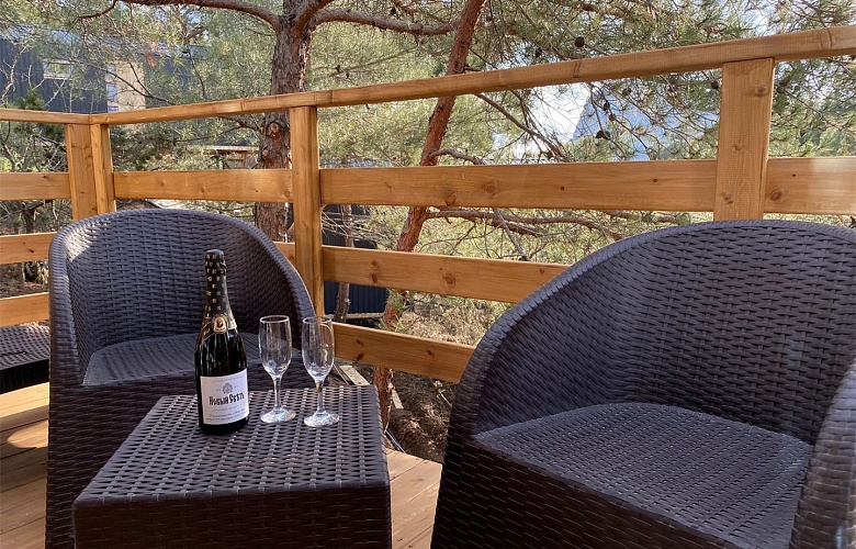 Площадь номера - 29 кв.м. 2 осн. места. 2 доп. места. Мебель: вешалка, диван, зеркало, кровать двуспальная, прикроватные тумбочки, стол, столик журнальный, стулья, тумба, шкаф. Оборудование: кондиционер, сейф, телевизор, холодильник, электрочайник. Санузел: с душем, туалетные принадлежности, фен. Сервис: room-сервис, смена полотенец, смена постельного белья, уборка номера. Терраса.
